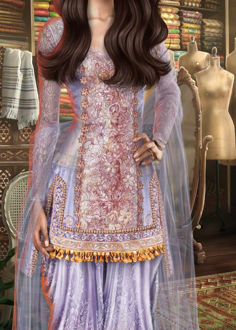 A lavish lilac salwar kameez, beautifully embroidered, the threads glinting like silver when they caught the light. My hands sank into the fabric. It was soft, cool, alive.